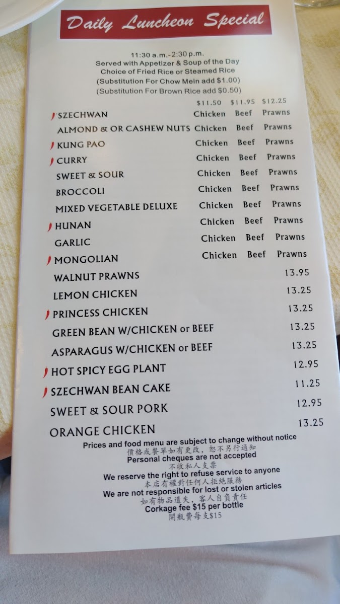 Noodle enthusiasts will rejoice at the vast selection, including the fan-favorite Beef Chow Fun and the Combination Chow Fun, both of which boast generous servings that are perfect for sharing—or savoring solo! The China Paradise Special Noodle Soup offers a comforting, aromatic experience, perfect for a chilly day.